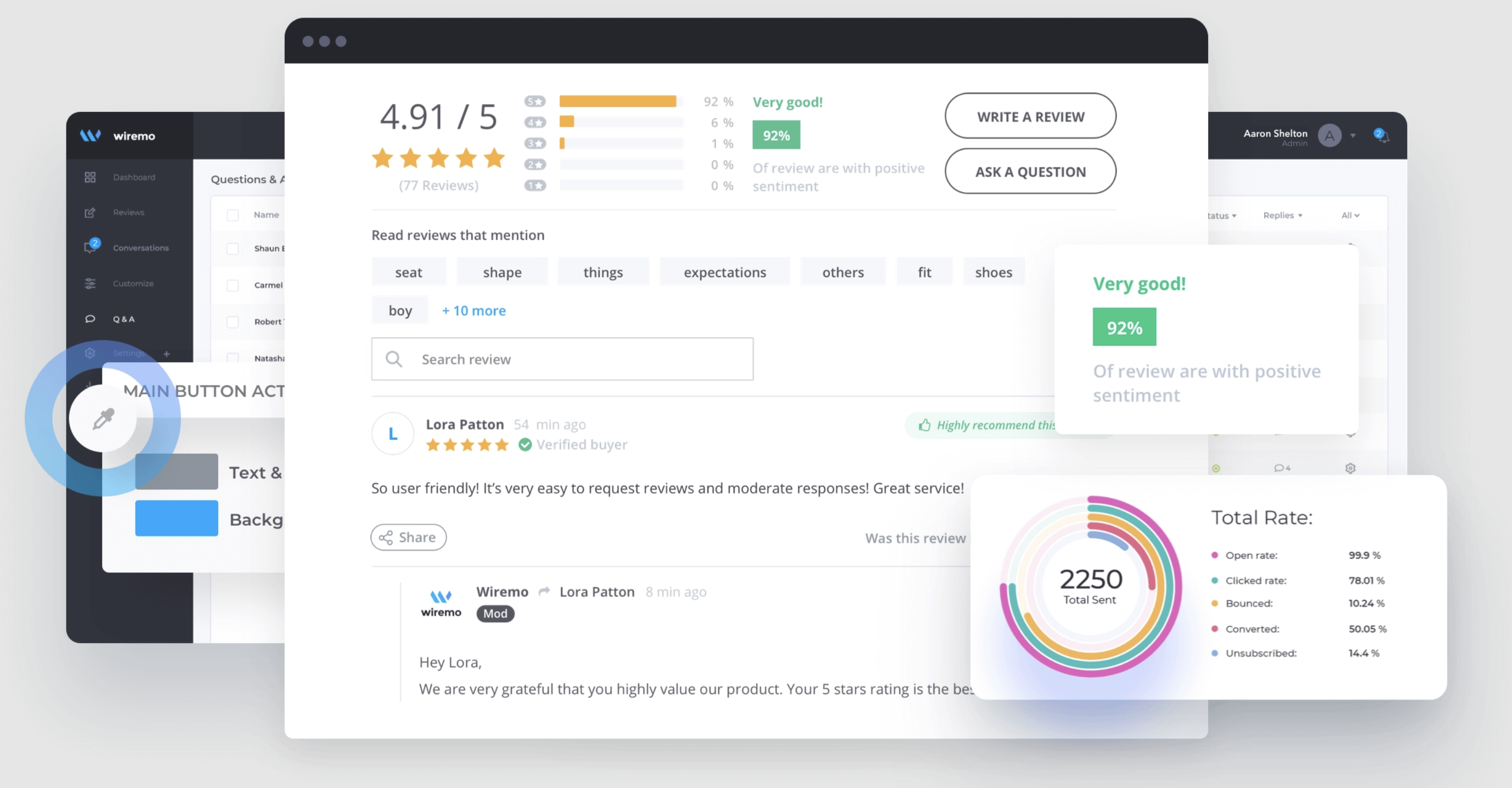 The more reviews you have, the more customers will trust you. Studies show conversions grow by at least 15% when a product or service has active reviews. With your customers creating fresh, unique content, Google will show your brand more often. It’s a free organic SEO machine. Wiremo’s platform uses your ability to impress customers to bring you more visitors. Wiremo is more than a customer reviews tool. Personalized automated messages help you keep customers coming back —without customer service overwhelm. Make your customers feel appreciated with a personal email that prompts them to share their review on any product they have purchased. By doing this, you will maintain those loyal customers who are repeat buyers, and also increase the likelihood that other like-minded shoppers will come and buy from you again!
